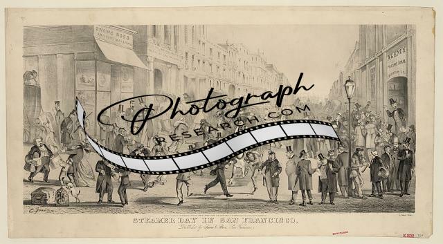 Steamer day in San Francisco,California,CA,c1866,busy street scene