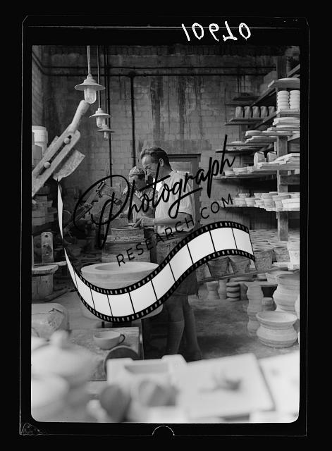 Title: Jewish factories in Palestine on Plain of Sharon & along the coast to Haifa. Haifa. The 'Kadar' Ltd. Ceramics. Hand painting on burnt articles