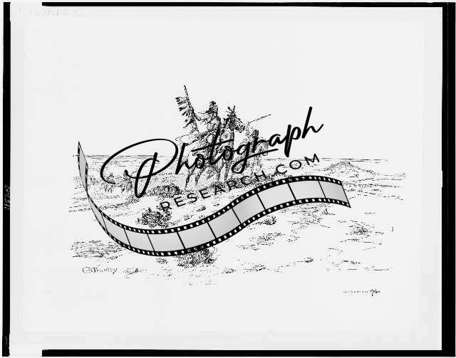 Summary: Indians in camp, one carving buffalo horn, one with calumet, and one with bow and arrows.