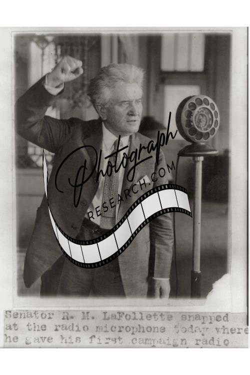 Robert Marion LaFollette,standing at radio microphone,Fighting Bob,1855-1925