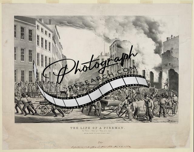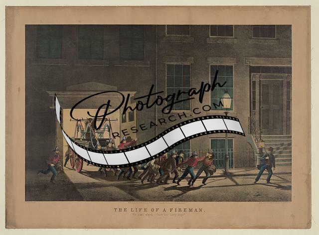 Life of a fireman: the night alarm--'start her lively boys.',c1854,Louis Maurer