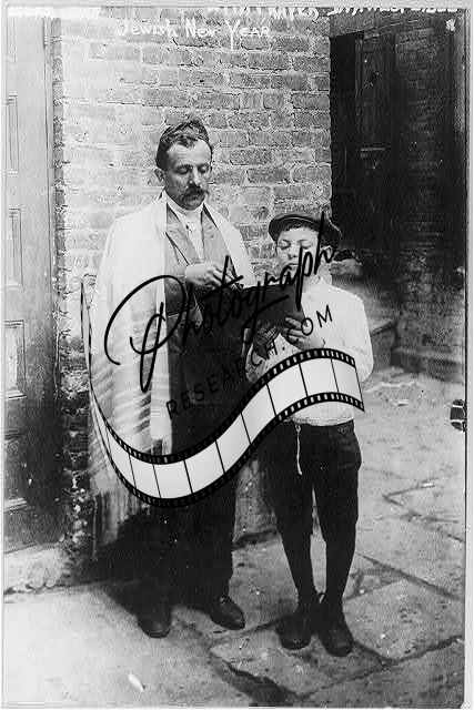 Worshippers on the Jewish New Year,1907,in New York City,NYC,Rabbi,boy,book