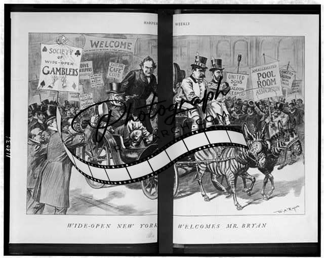 Wide-Open New York welcomes Mr. Bryan,1900,William Jennings Bryan,Zebras,Saloons