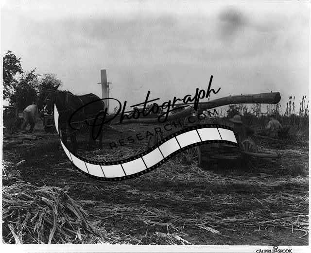 Sorghum making - Grinding the cane,Kentucky,KY,Machine powered by 2 horses,c1927
