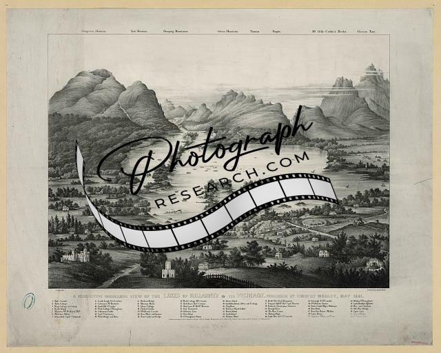 Perspective panoramic view of the lakes of Killarney,c1851?,Photograph,water