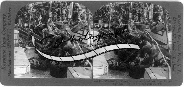 Washing sponges,boat,Great, Fleet,fishing industry,Tarpon Springs,Florida,c1926