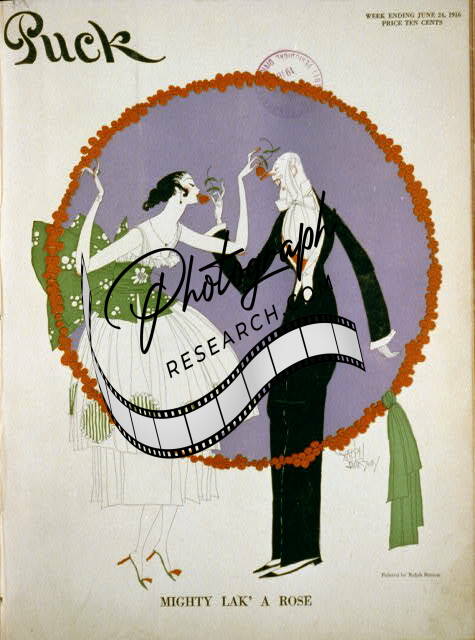 Mighty lak' a rose,1914,woman in gown,man,holding roses to eachothers nose,Puck