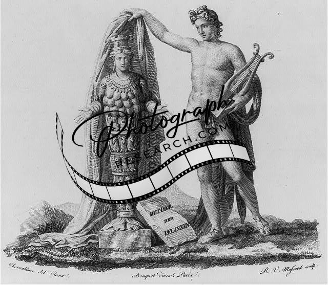 Nude youth,lyre,unveiling statue,woman,animal figures,Metamor de Pflanzen,1807
