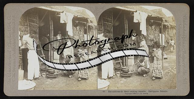 Native huts of bamboo thatched with nipa, Philippine Islands