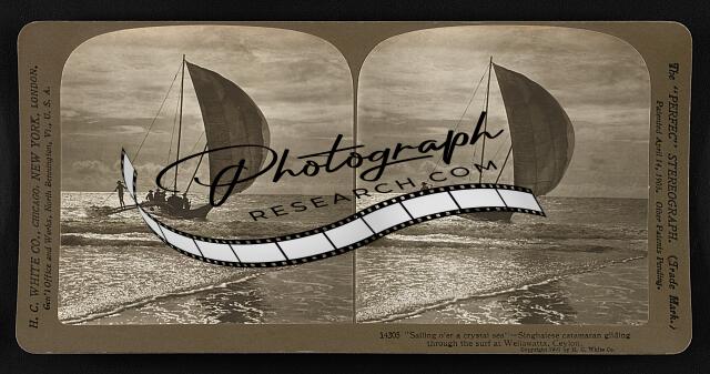 "Sailing o'er a crystal sea"--Singhalese catamaran gliding through the surf at W