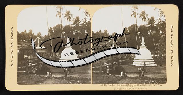 The dagoba,--bell-shaped shrine--and the Hindu temple, Kandy, Ceylon