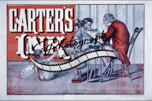 Carter's ink,1890s,Cupid and man writing at desk,photograph
