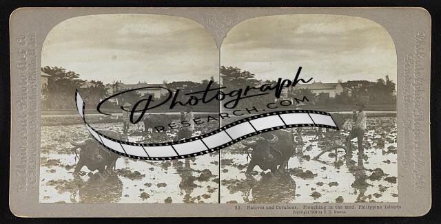 Natives and caraboas. Ploughing in the mud, Philippine Islands