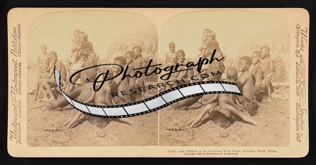 Coolly clad children in an Umlaloose River Kraal, Zululand, South Africa