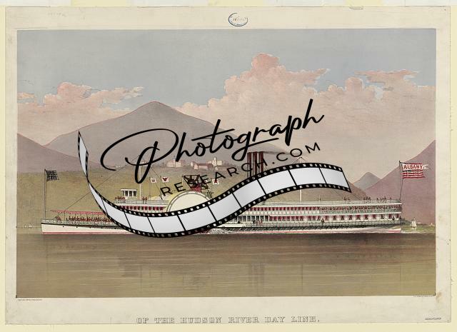 Of the Hudson River day line,vessel,river boat,flags,Albany,coulds