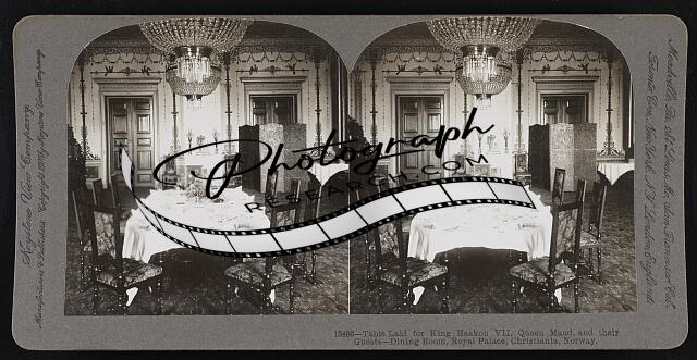 Table laid for King Haakon VII, Queen Maud, and their guests--dining room, Royal