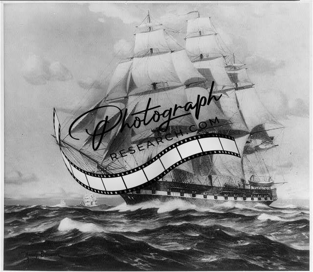 U.S.S. Constitution,Full Sail,Port,Waves,c1933,Berhahl