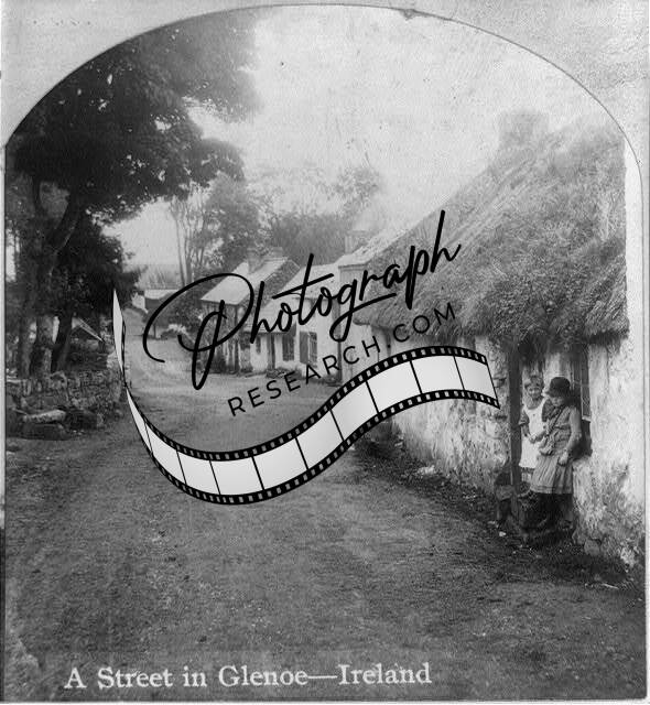 A Street in Glenoe,Ireland,c1893,Thatched Roof,Chidlren,Trees
