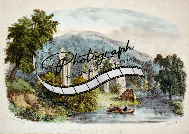 The old ruins,1856-1907,Currier & Ives,Photograph,row boat,people,water