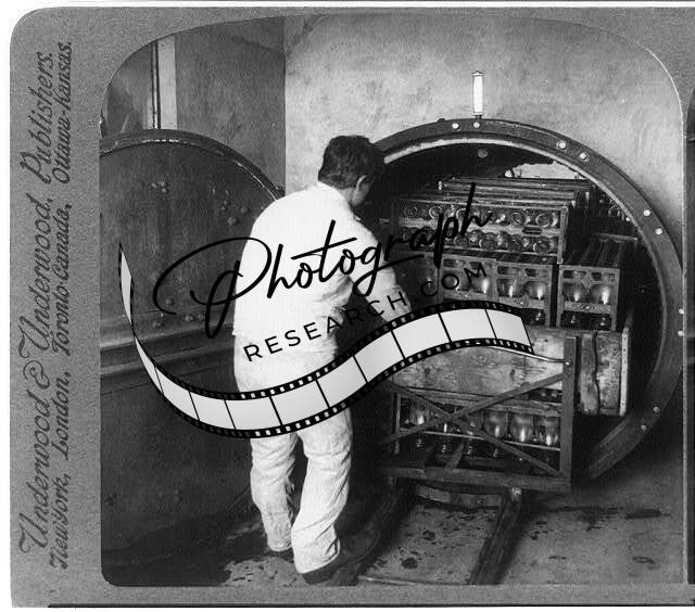Milk Bottles leaving Purifying Heat of Sterilizer,Large Dairy,Machinery,c1910