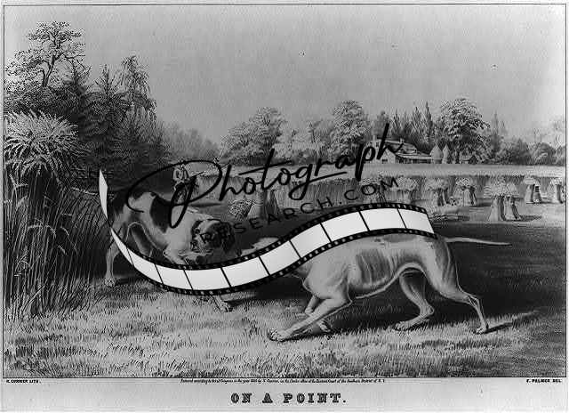On a point,c1855,Currier & Ives,Photo,Frances F. Palmer,dogs,hunter,cottage