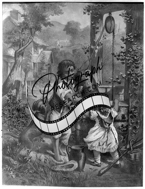 Old oaken bucket,September 2,c1873?,Children,dog,well