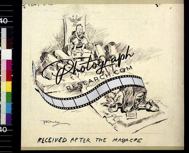Received after the massacre,Ruler,Artillery,American Cartoon,Felix Mahony,c1904