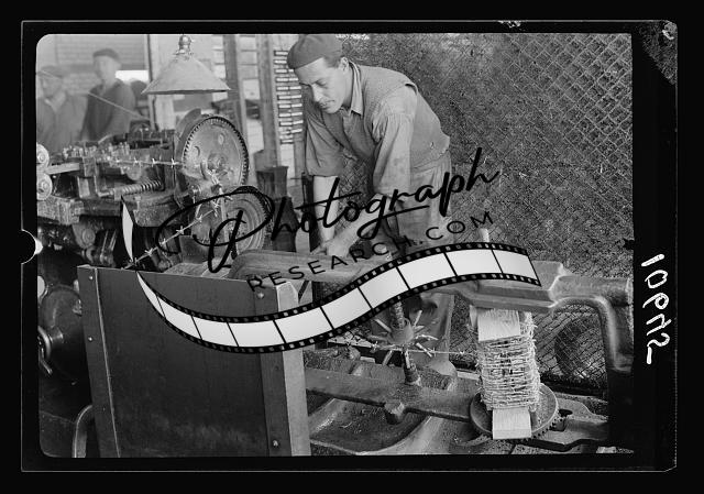 Title: Jewish factories in Palestine on Plain of Sharon & along the coast to Haifa. Haifa. The Palestine Electric Cable Works. Winding of rubber insulated wire