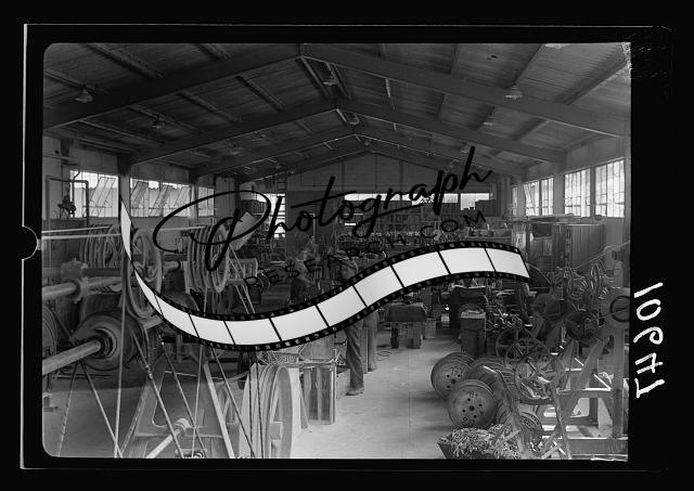 Title: Jewish factories in Palestine on Plain of Sharon & along the coast to Haifa. Haifa. The Palestine Electric Cable Works. Vulcanized wire is strengthened & insulated by a cover of cotton yarn