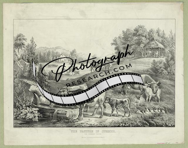 Pasture in the Summer,Drinking Trough,c1867,Currier & Ives,Photo,cows,livestock