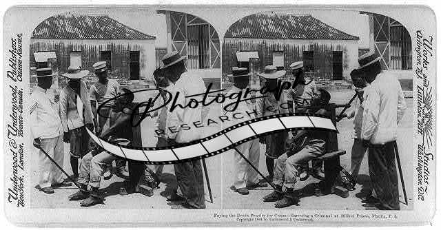 Paying the death penalty for crime - garroting a criminal at Bilibid Prison, Manila, P.I.