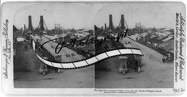 Manila,Philippine Islands,Pasig River suspension bridge,from north side,c1899