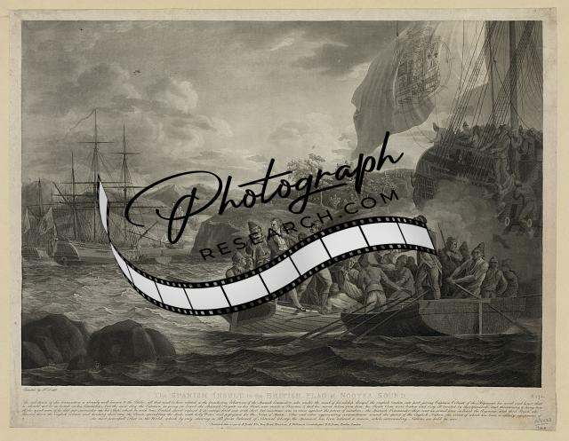 The Spanish insult to the British flag at Nootka Sound,R. Dodd,ships,sailors
