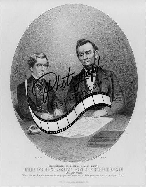 President Abraham Lincoln,Secretary Seward,signing the Proclamation of Freedom