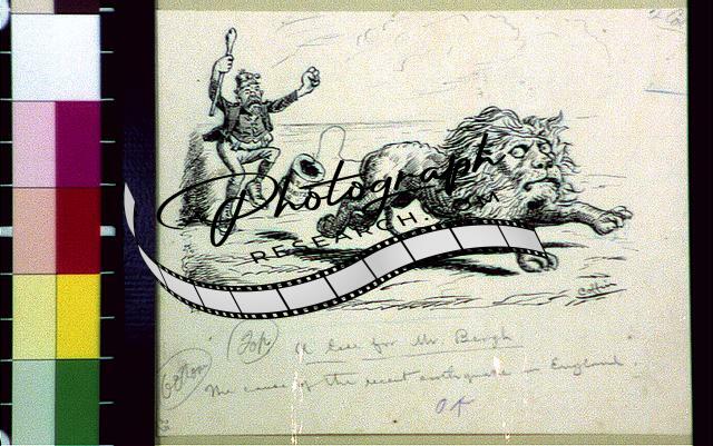 A case for Mr. Bergh,Dynamite,Lion,Great Britain,Earthquake,Chasing,Cartoon,1890