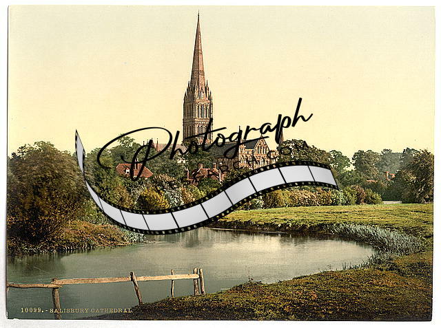 Cathedral,from the river,Salisbury,England,1890s