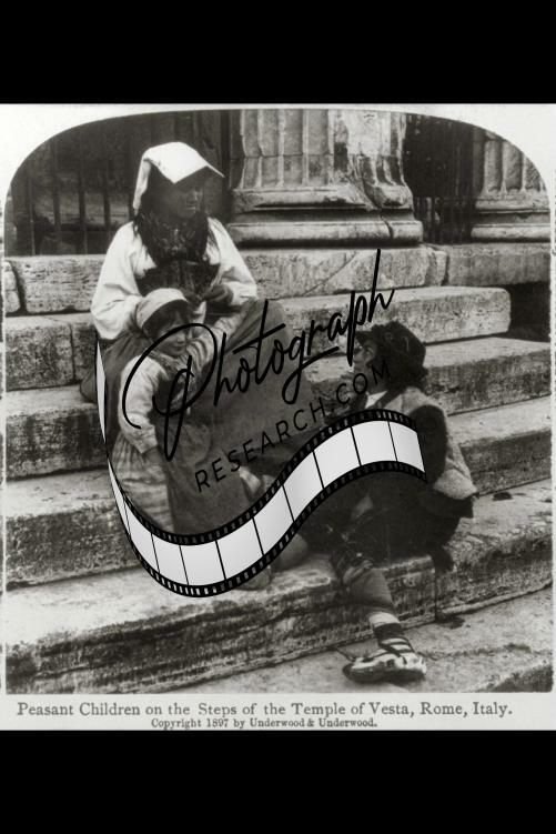 Peasant Children,Steps of Temple of Vesta,Rome,Italy,c1897,Kids