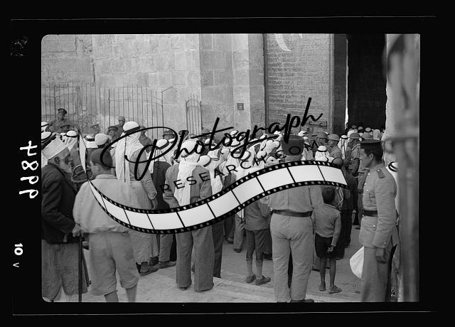 Title: The raising of the siege of Jerusalem. A large crowds of Arabs waiting for curfew hour to enter into Old City