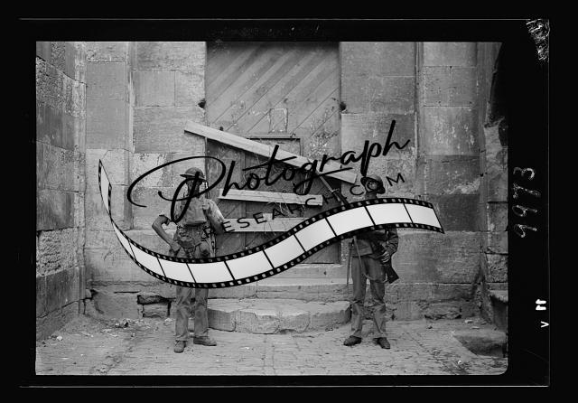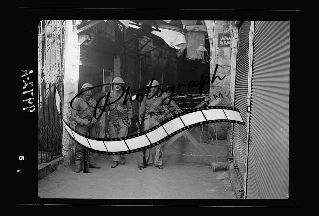 Title: The raising of the siege of Jerusalem. Typical scene of troops in Old City before the lifting of curfew, along south wall