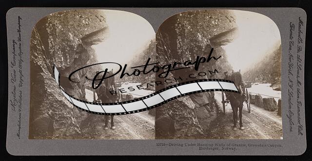 Driving under hanging walls of granite, Gronsdals canyon, Hardanger, Norway