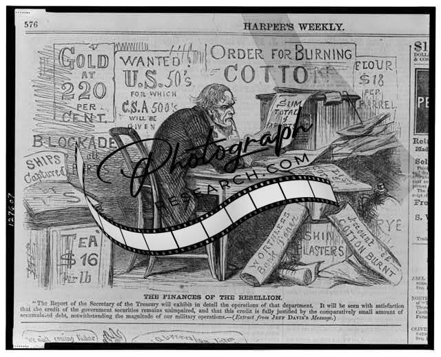 The Finances of the Rebellion,Jefferson Davis,Cartoon,Desk,Harbers Weekly,1862