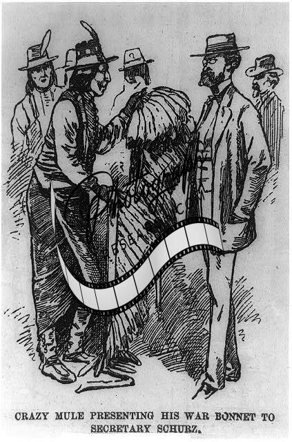 Crazy Mule presenting his war bonnet to Secretary of Interior Carl Schurz,c1879