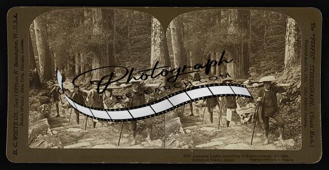Japanese ladies travelling in Kagos through the dark forests at Nikko, Japan