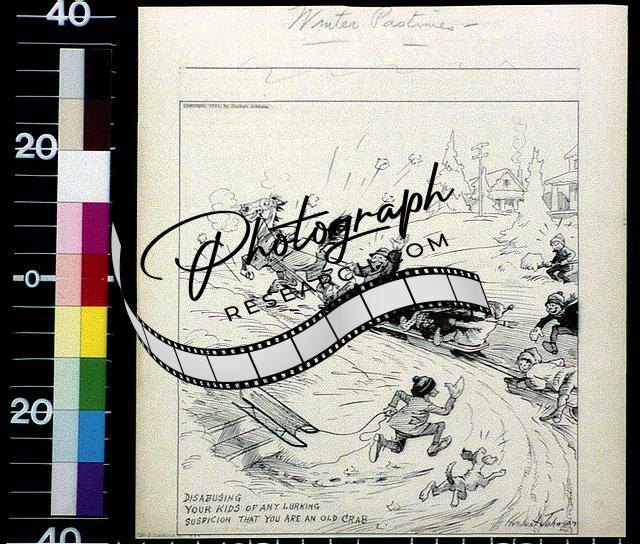 Winter Pastimes,Disabusing your Kids,Sledding,Family,Snow,c1921,Lurking