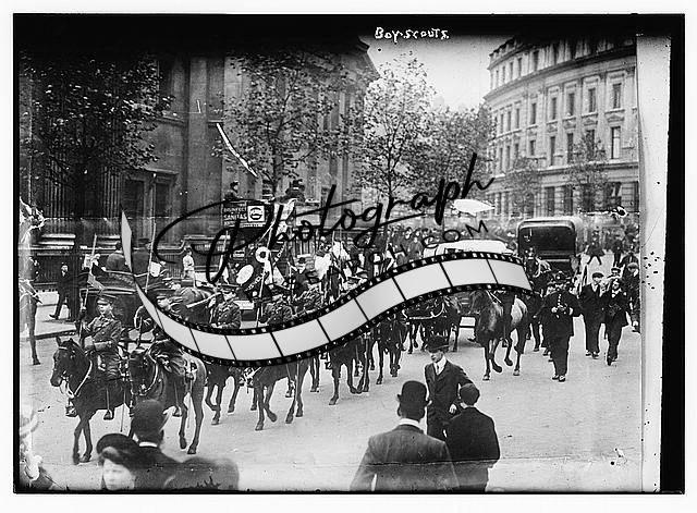 Boy Scouts. Marching on horseback down a street,Children,spectators,autos
