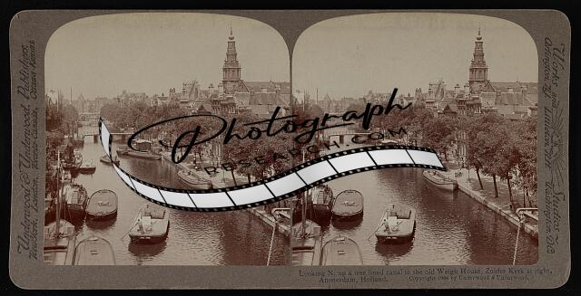 Looking n. up a tree lined canal to the old Weigh house, Zuider Kerk at right, A