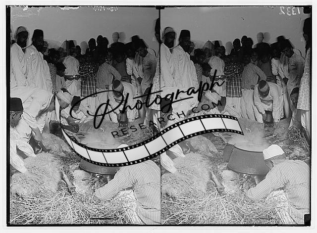 Title: The Samaritan Passover on Mt. Gerizim. Pulling the wool off the sheep.