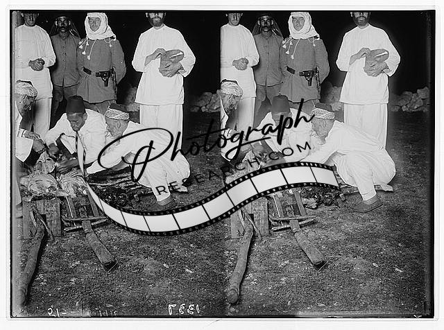 Title: The Samaritan Passover on Mt. Gerizim. Samaritan family eating the sacrifice.