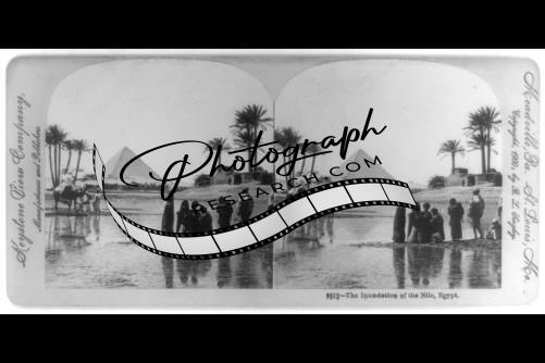 The inundation of the Nile,Egypt,Camel,Pyramid,group of people,c1900,photograph
