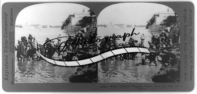Water carriers dipping water form the Nile River,Egypt,c1919,Irrigation,Photo